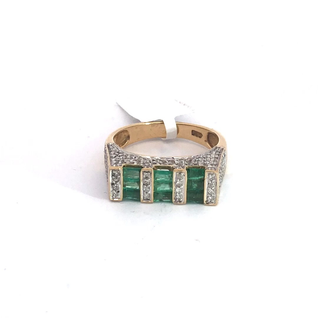 5.9g 14k Yellow Gold Emerald & Diamond Ring