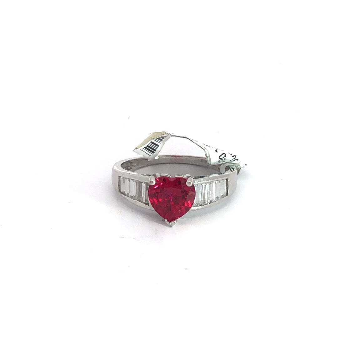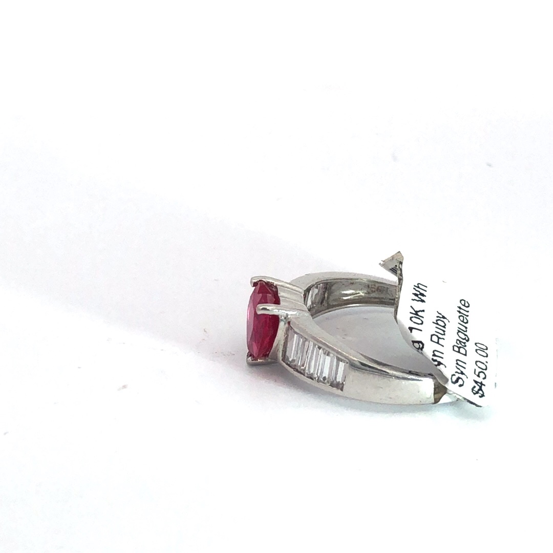 3.2g 10k White Gold Synthetic Ruby and Baguette Ring