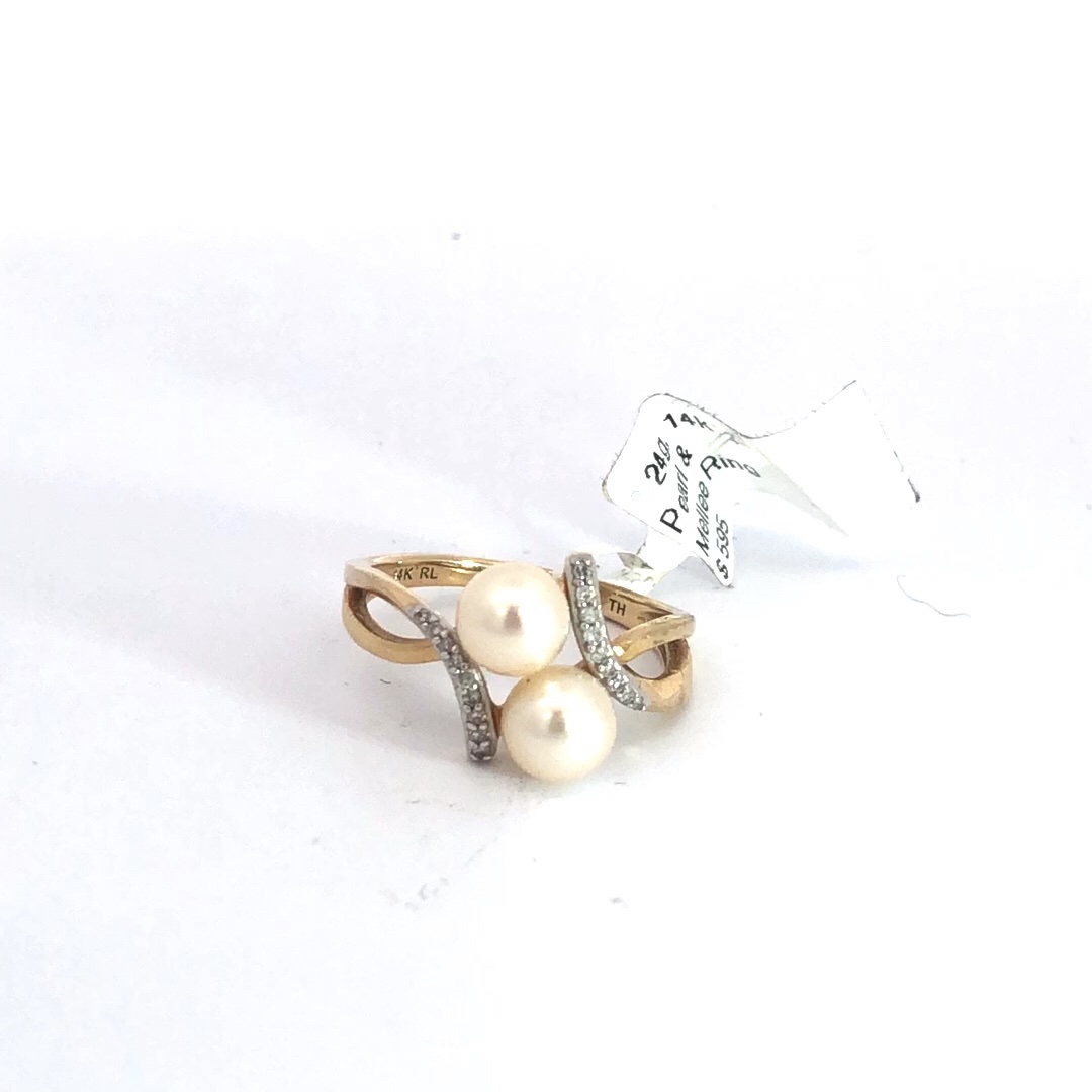 3.24g 14k Yellow Gold Pearl and Melee Ring