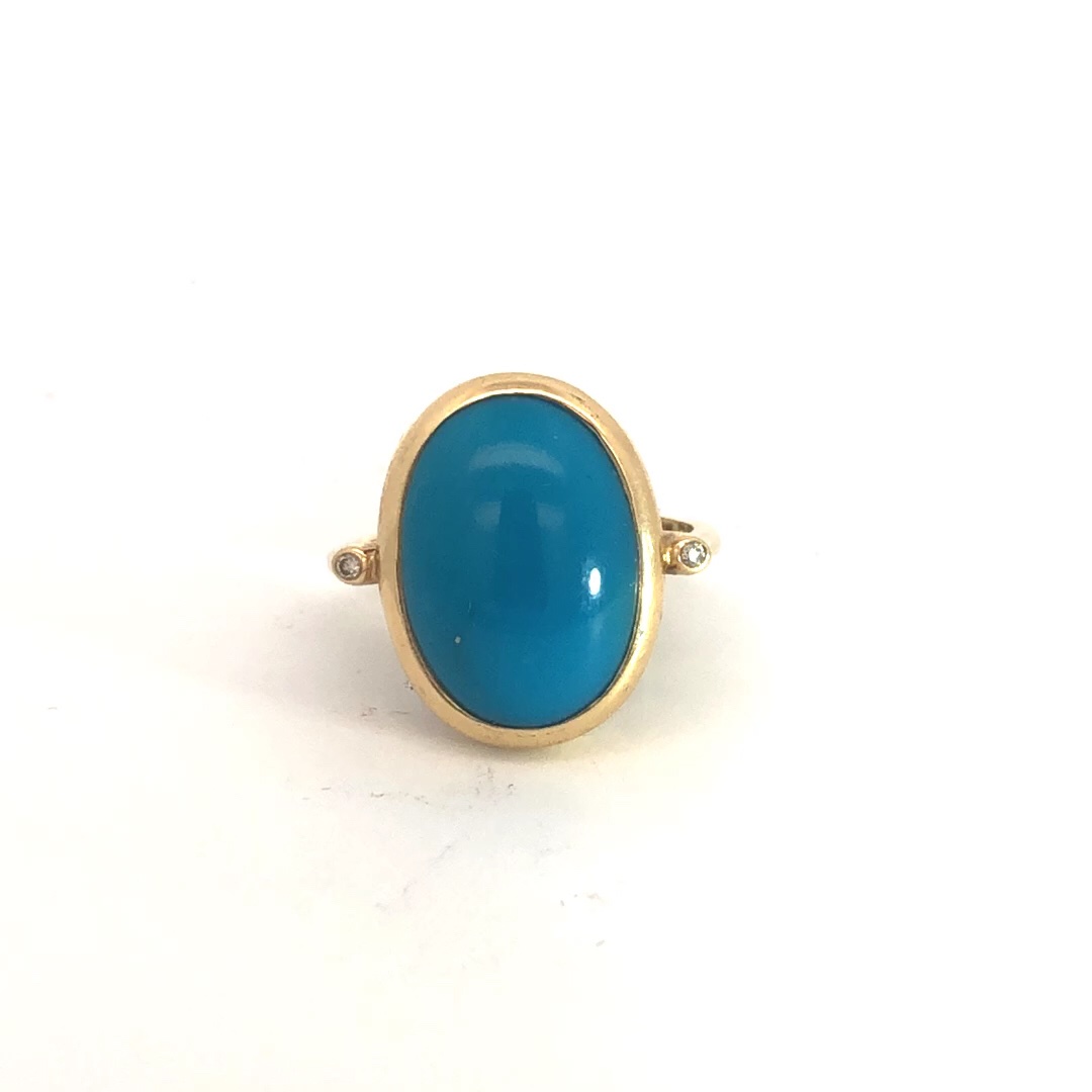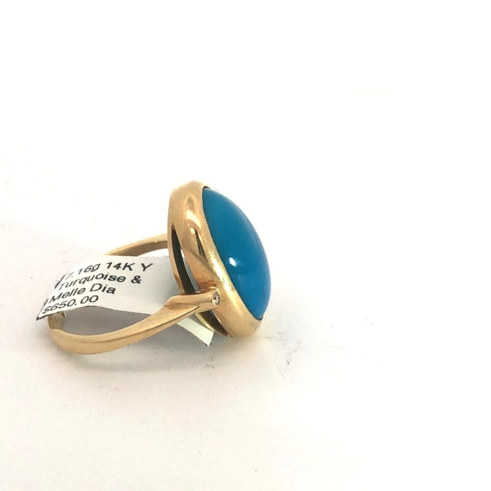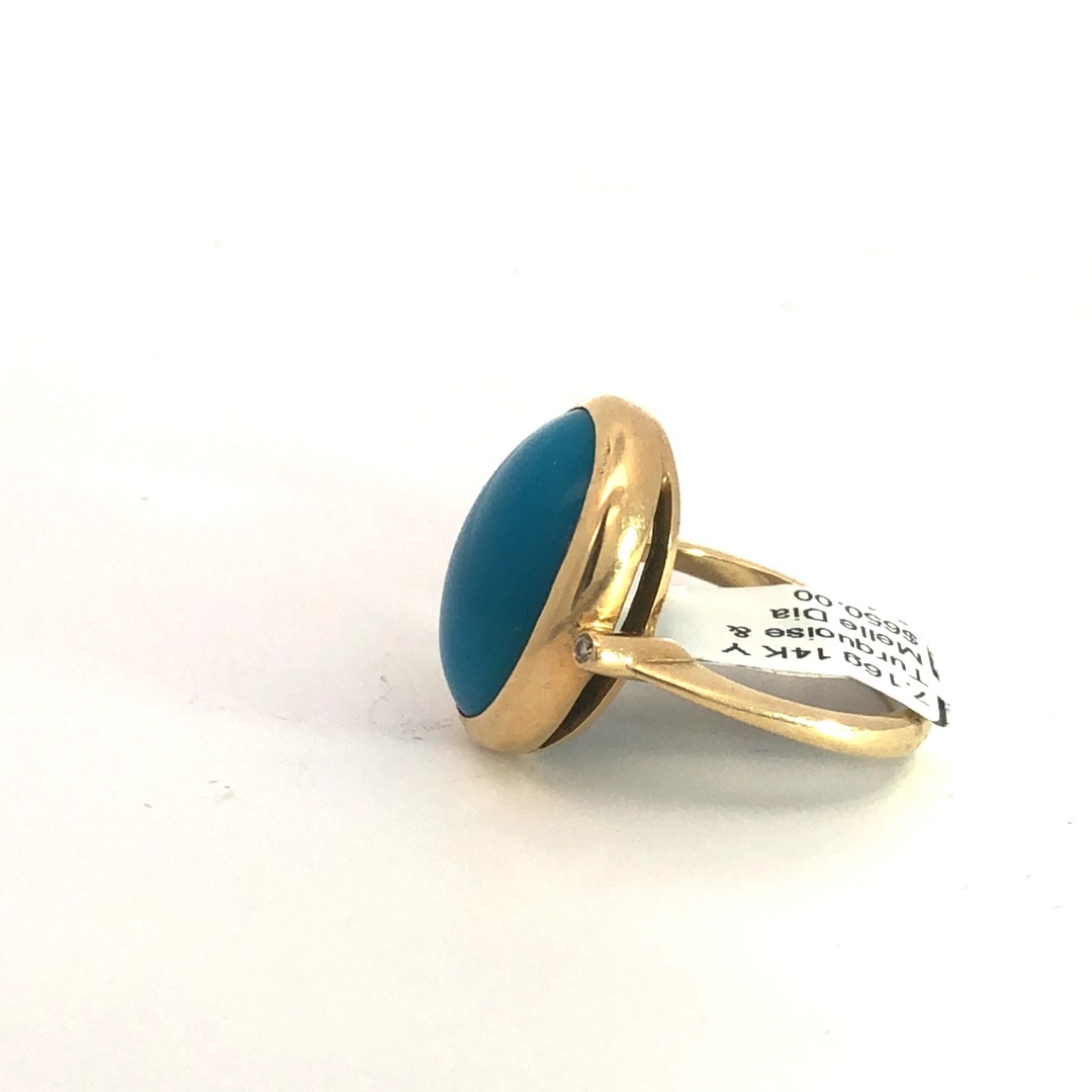 7.16g 14k Yellow Gold Ring with Turquoise and Melee Diamonds
