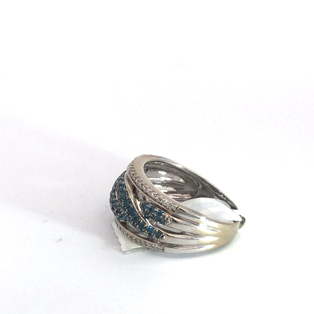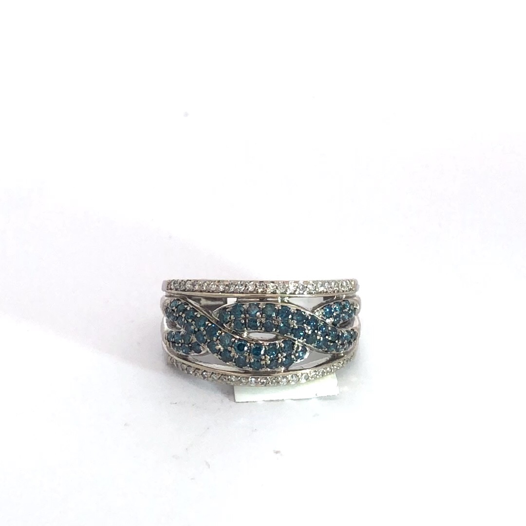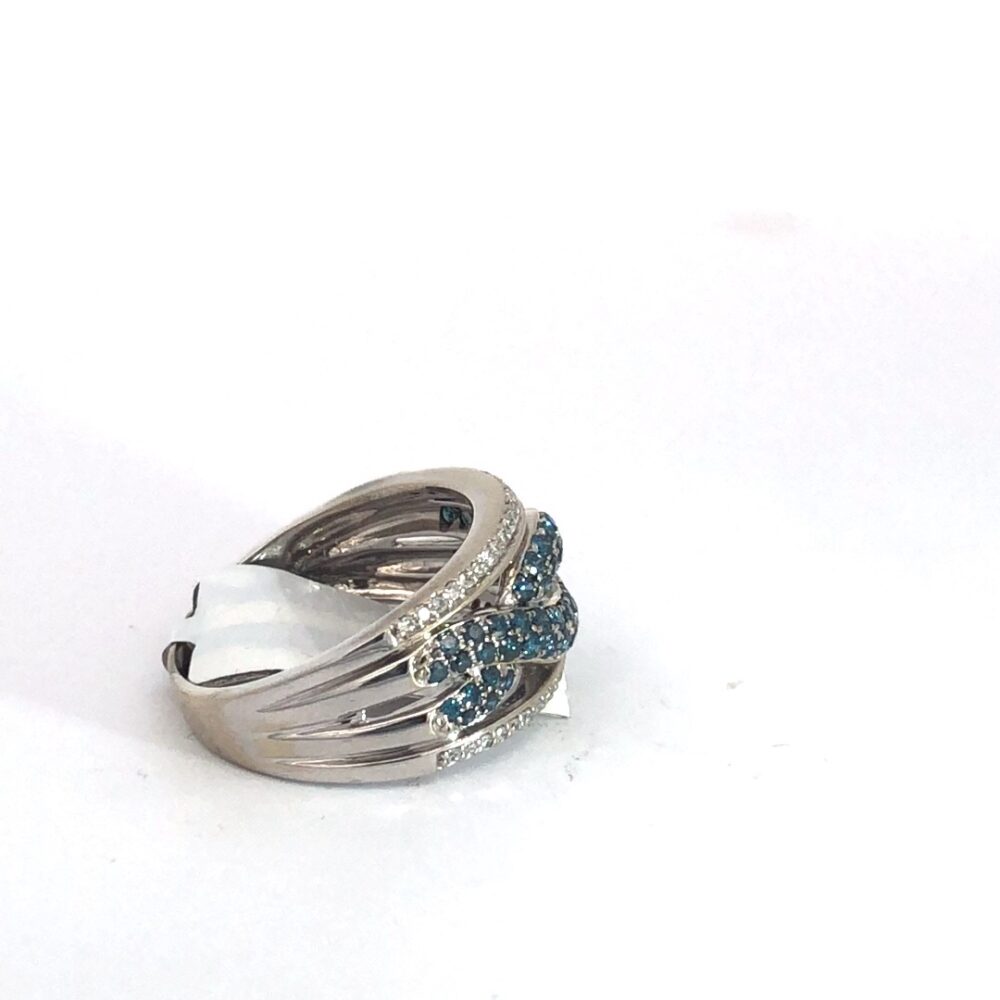 3g 14k White Gold Blue Melee Diamond Ring