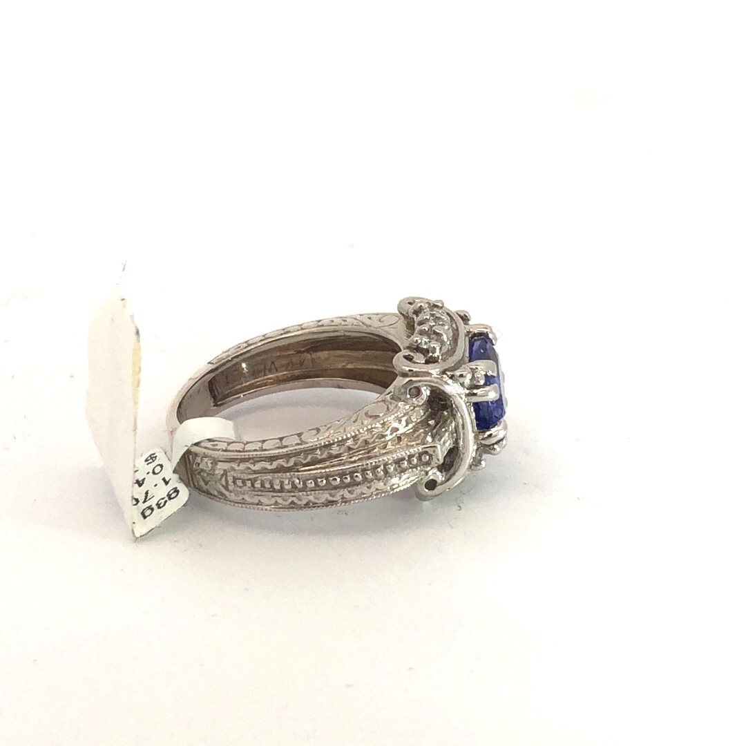 8.90g 14k White Gold Ring with HT Top and Diamonds