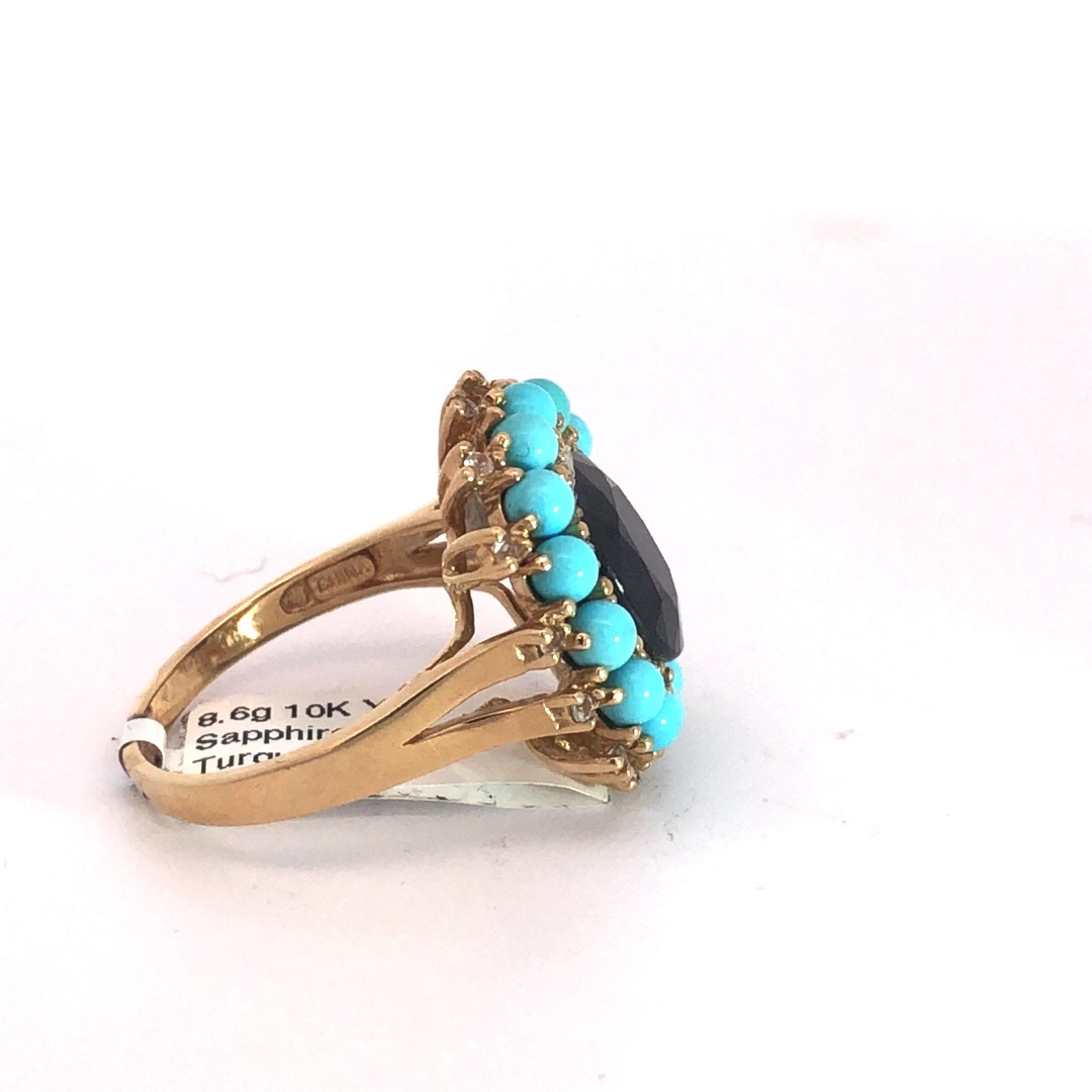 8.6g 10k Yellow Gold Sapphire and Turquoise Ring