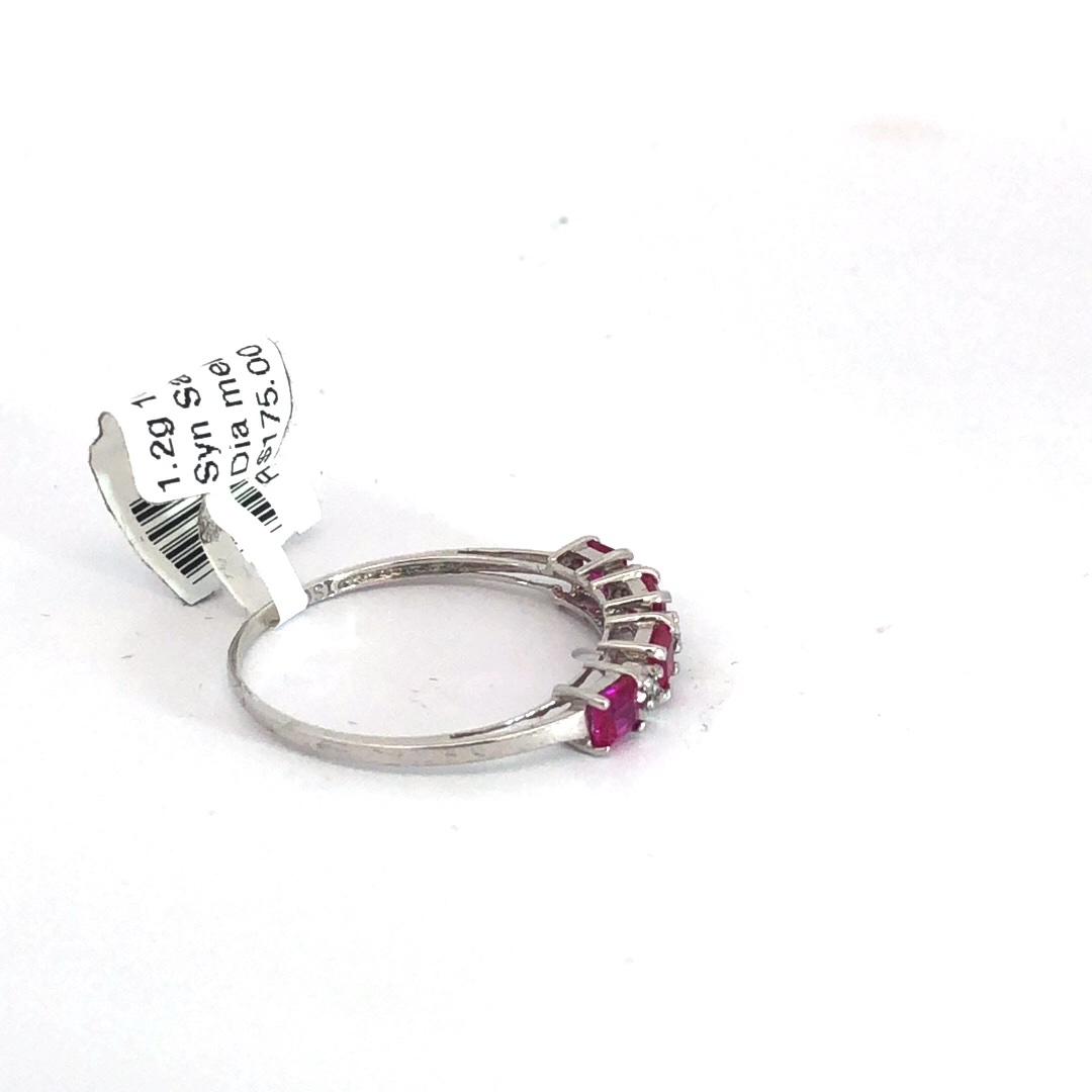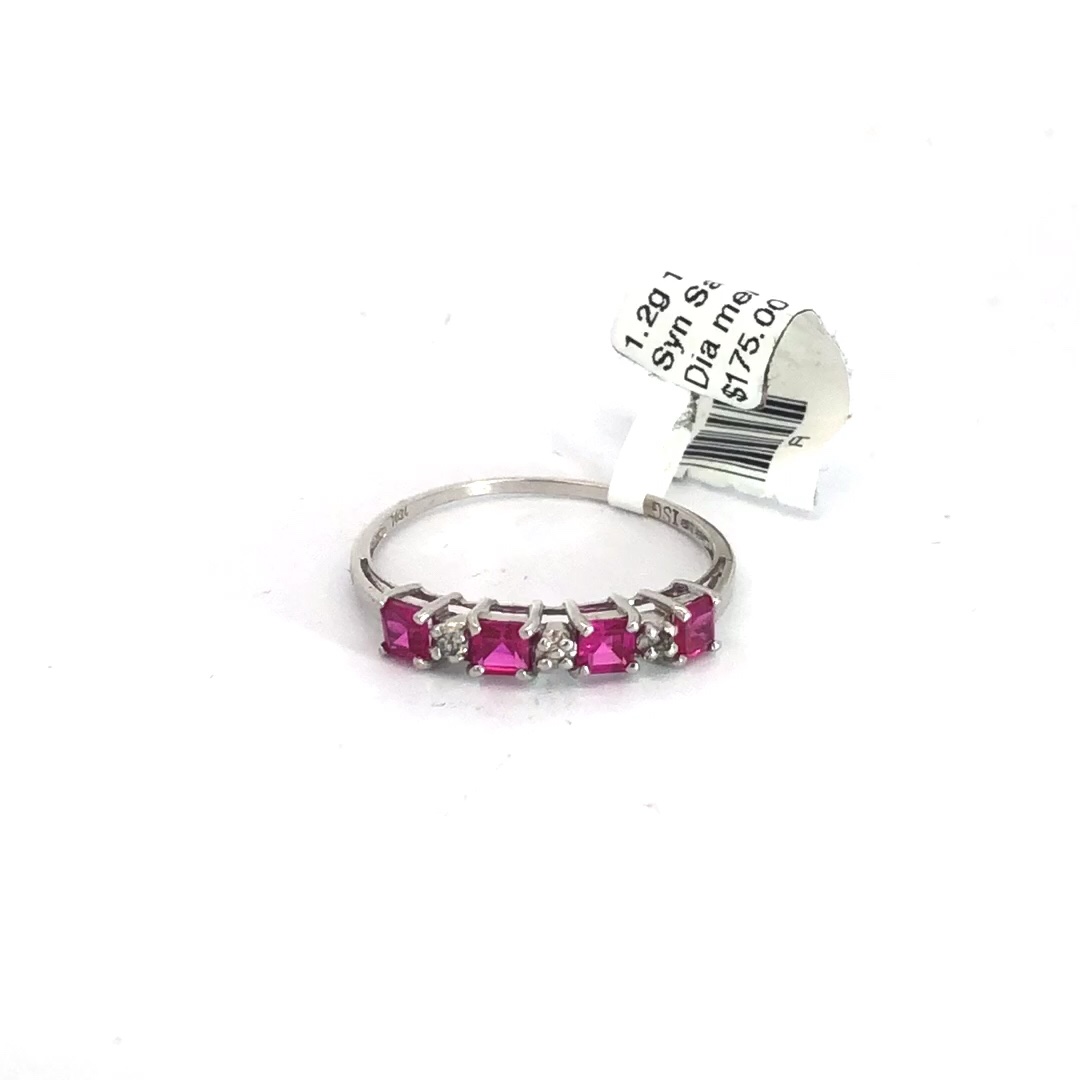 1.2g 10k White Gold Synthetic Sapphire and Melee Ring